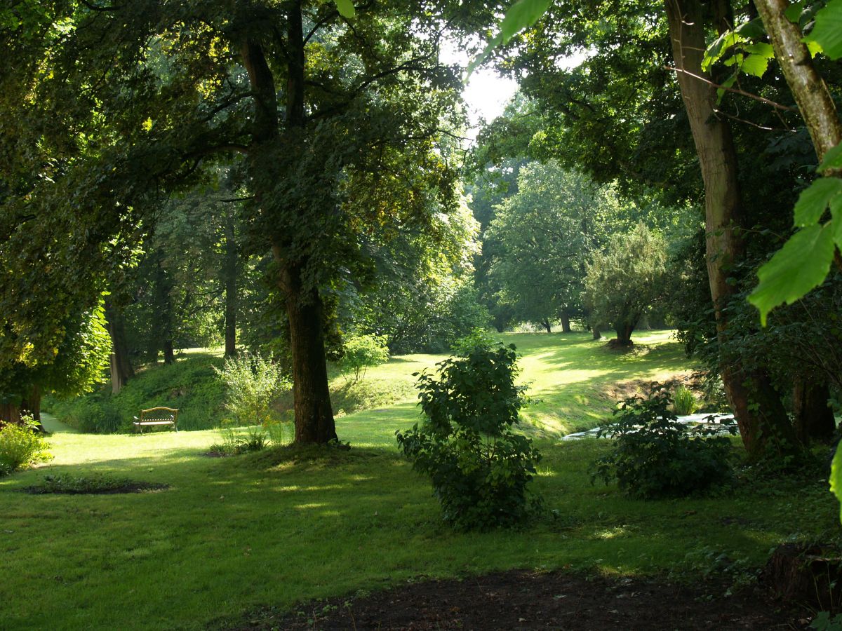 Alter und artenreicher Baumbestand schmückt den großen denkmalgeschützten Landschaftspark. Uralte Bäume, Sträucher, kleine Teiche und große Rasenflächen ergänzen sich zu einer Landschaft, wie sie im Zeitalter der Romantik der Vorstellung vom Paradies entsprach. Das wollte man schon im Diesseits erleben. Die idealisierte Landschaft vermittelt Ruhe und Entspannung.