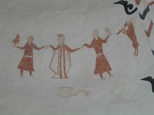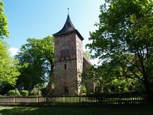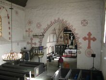 Eine frühe Aufgabe der Vorfahren war der Bau der Kirche. Sie liegt, umgeben von uralten Eichen, auf einer kleinen Anhöhe gegenüber dem Schloss. Der romanische Teil der Kirche, der heutige Chorraum, wurde 1233 geweiht. Freskenmalereien aus der Bauzeit bieten ein einrucksvolles Bild von der Vorstellungswelt der Menschen jener Zeit.