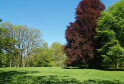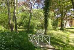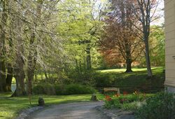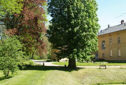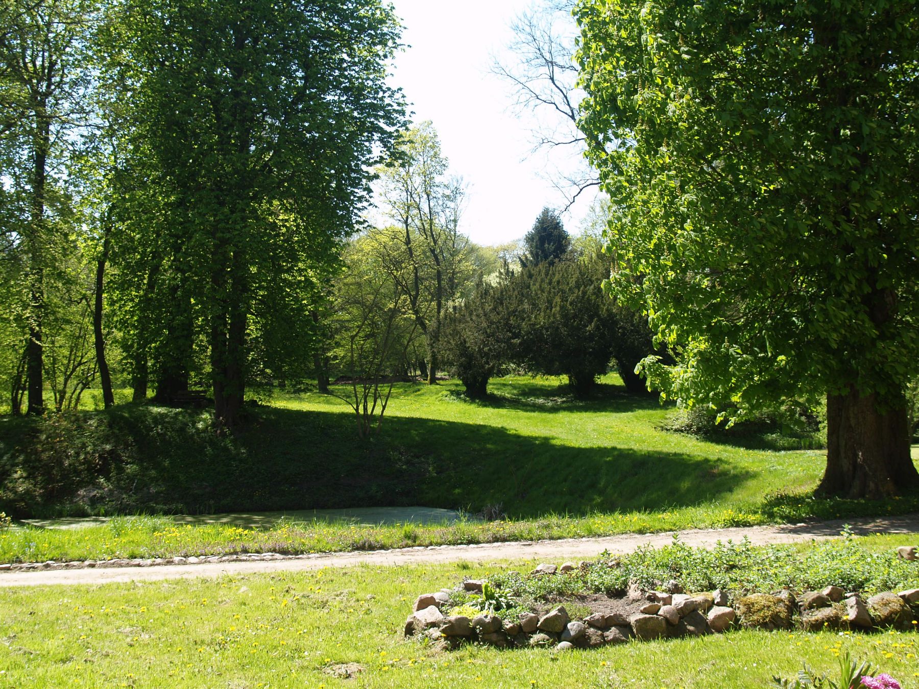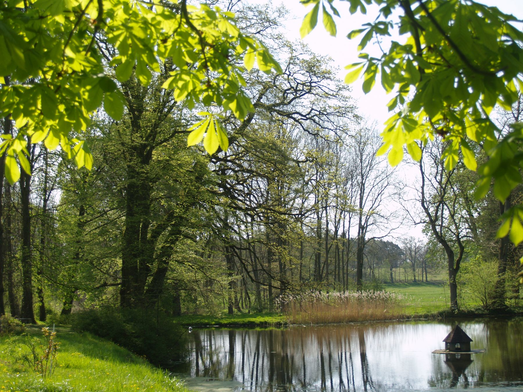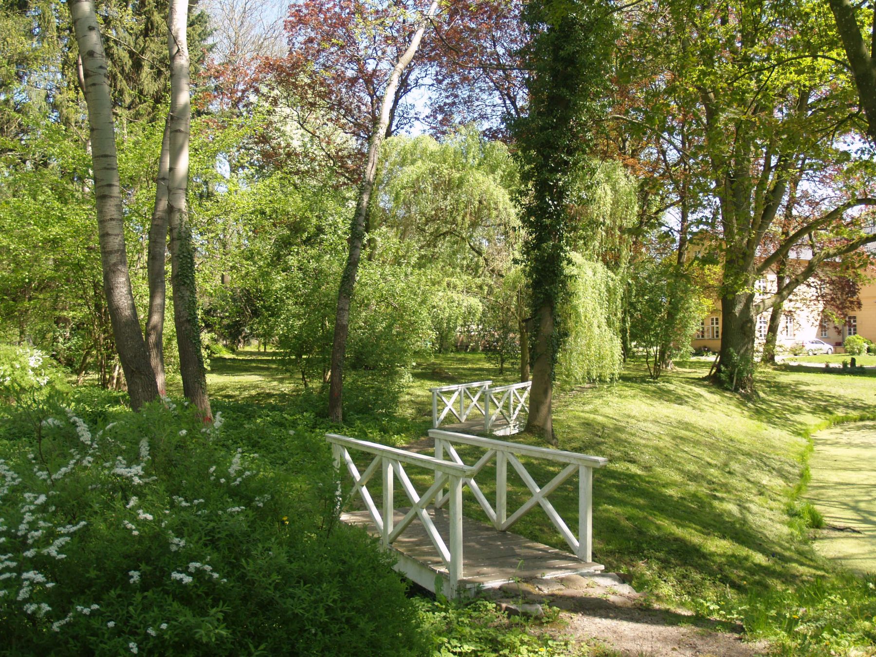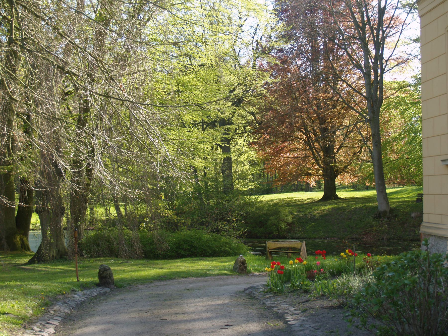 Alter und artenreicher Baumbestand schmückt den großen denkmalgeschützten Landschaftspark. Uralte Bäume, Sträucher, kleine Teiche und große Rasenflächen ergänzen sich zu einer Landschaft, wie sie im Zeitalter der Romantik der Vorstellung vom Paradies entsprach. Das wollte man schon im Diesseits erleben. Die idealisierte Landschaft vermittelt Ruhe und Entspannung: